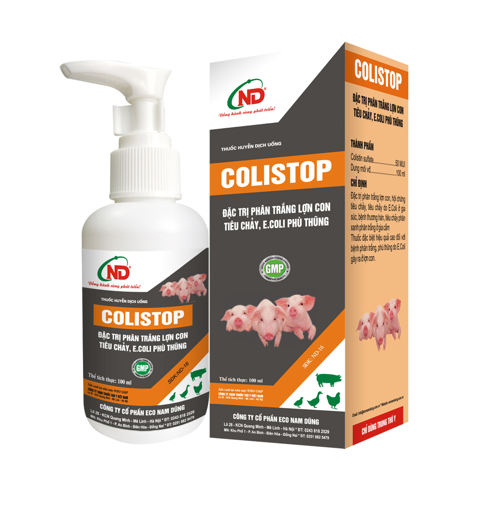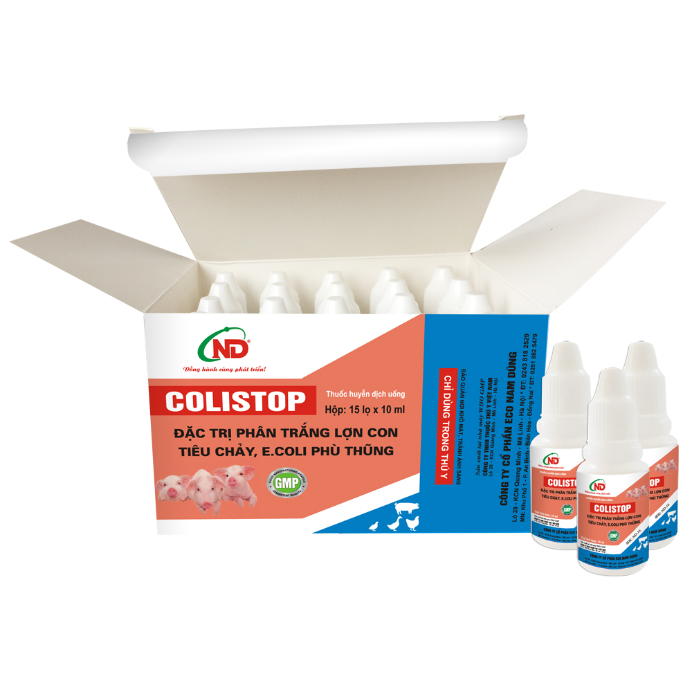 Đặc trị phân trắng lợn con, hội chứng tiêu chảy, tiêu chảy do E.coli ở gia súc, bệnh thương hàn, tiêu chảy phân xanh phân trắng ở gia cầm.