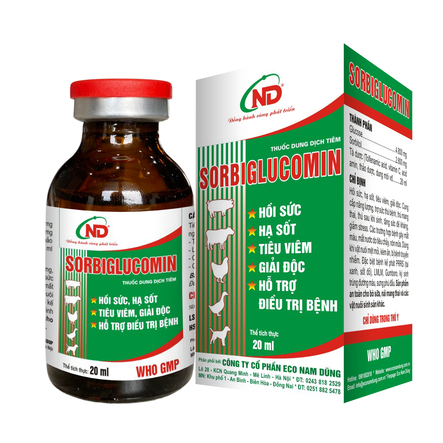 Hồi sức, hạ sốt, tiêu viêm, giải độc. Cung cấp năng lượng, trợ sức thú bệnh, thú mang thai, thú sau khi sinh, tăng sức đề kháng, giảm stress. Các trường hợp bệnh gây mất máu, mất nước do tiêu chảy, nôn mửa. Dùng khi vật nuôi mệt mỏi, kém ăn, bị bệnh truyền nhiễm. Đặc biệt bệnh kế phát PRRS (tai xanh, sốt đỏ), LMLM, Gumboro, ký sinh trùng đường máu, sưng phù đầu. Sản phẩm an toàn cho bò sữa, nái mang thai và các vật nuôi sinh sản khác.