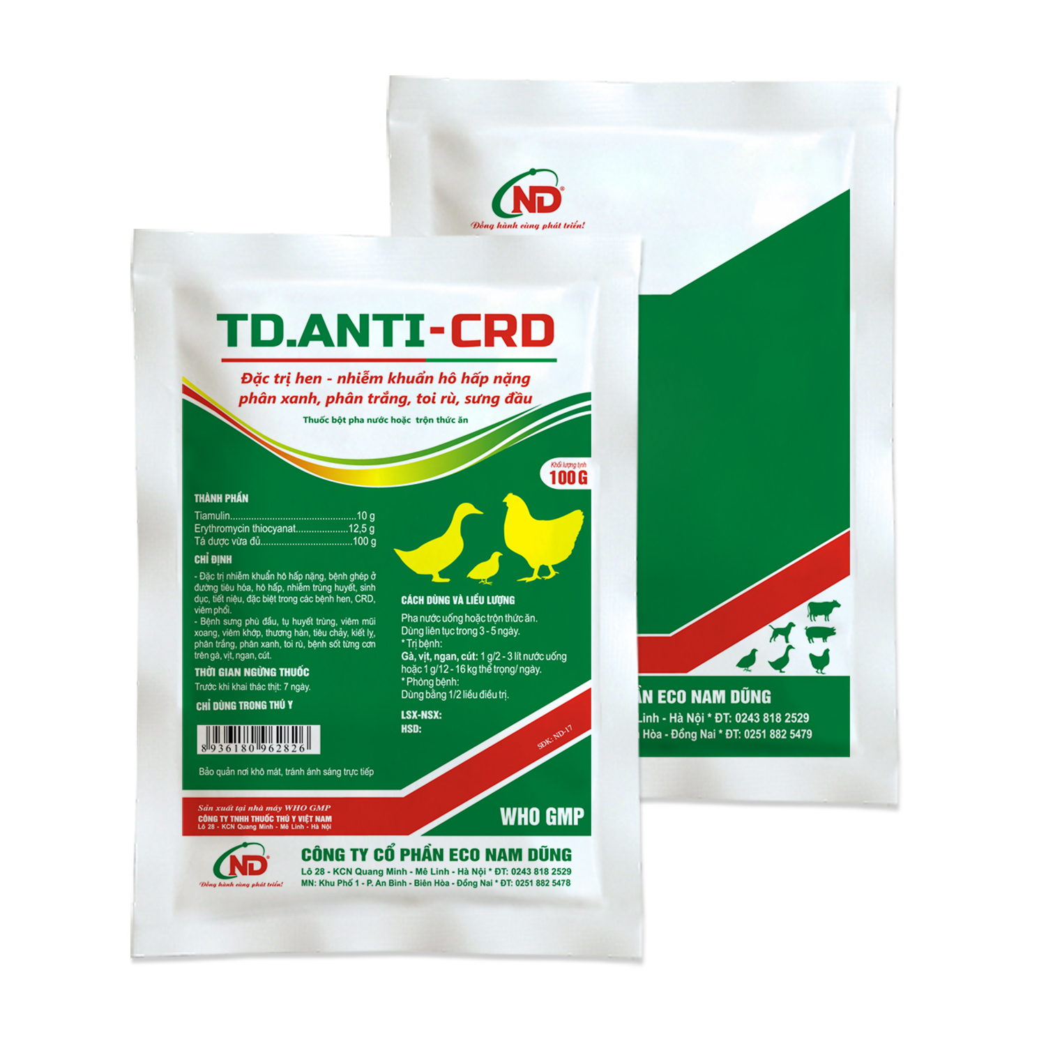 – Bệnh sưng phù đầu, tụ huyết trùng, viêm mũi xoang, viêm khớp, thương hàn, tiêu chảy, kiết lỵ, phân trắng, phân xanh, toi rù, bệnh sốt từng cơn trên gà, vịt, ngan, cút.
