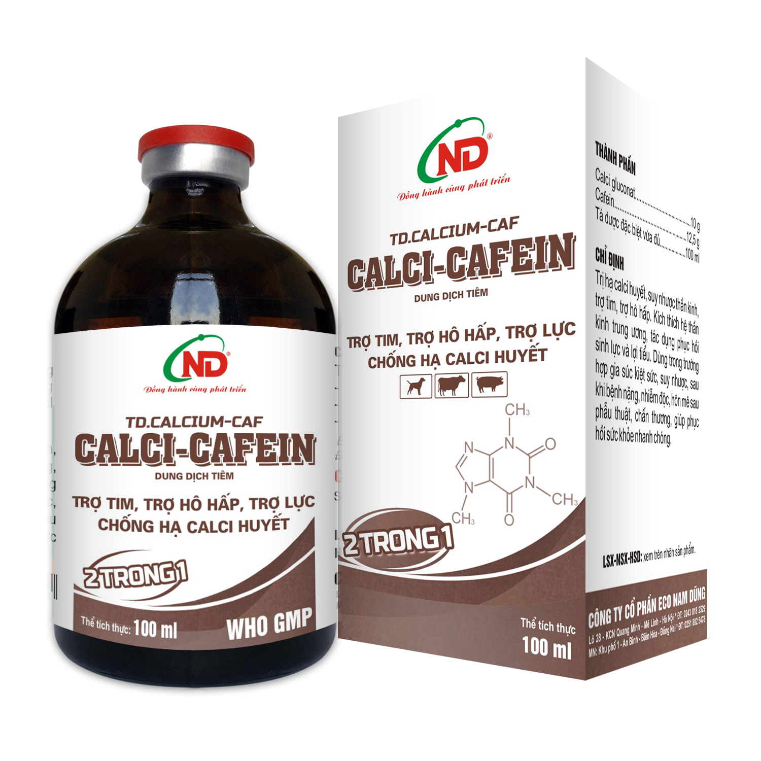 Trị hạ calci huyết, suy nhược thần kinh, trợ tim, trợ hô hấp , tăng lực. Trị bại liệt trước và sau khi sinh, còi xương, mềm xương, xốp xương.