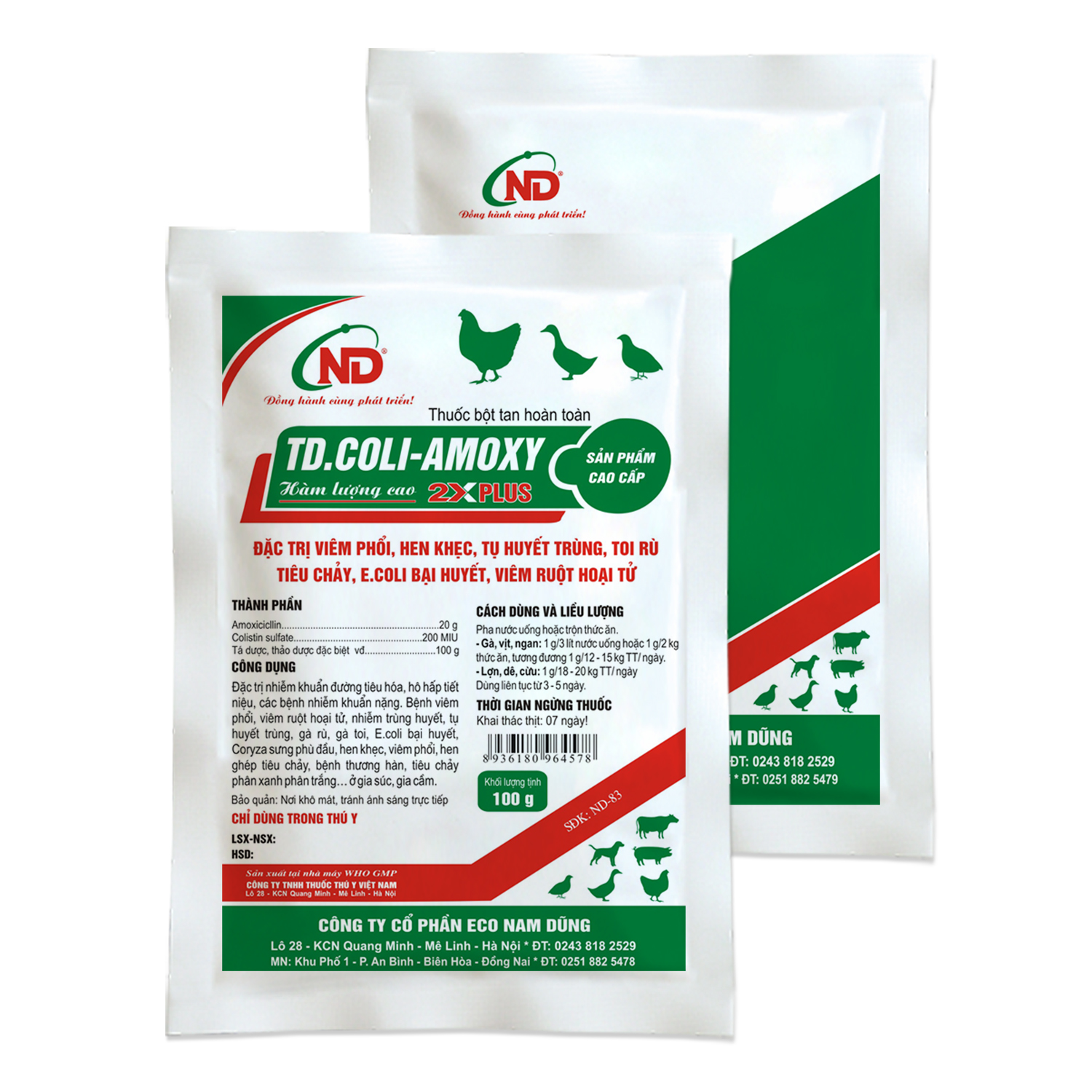 Đặc trị nhiễm khuẩn đường tiêu hóa, hô hấp tiết niệu, các bệnh nhiễm khuẩn nặng. Bệnh viêm phổi, viêm ruột hoại tử, nhiễm trùng huyết, tụ huyết trùng, gà rù, gà toi, E.coli bại huyết, Coryza sưng phù đầu, hen khẹc, viêm phổi, hen ghép tiêu chảy, bệnh thương hàn, tiêu chảy phân xanh phân trắng… ở gia súc, gia cầm.